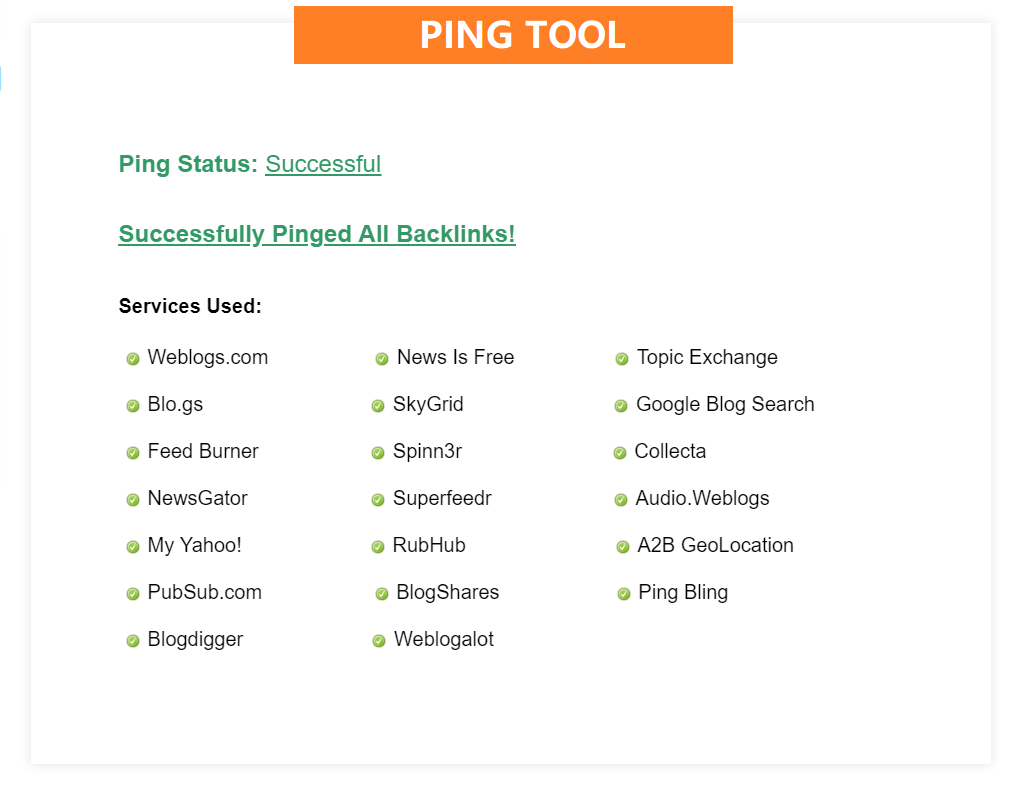 Ping all your videos links right after a successful submission, thanks to our built-in one click ping tool. It's easier than sending an email!