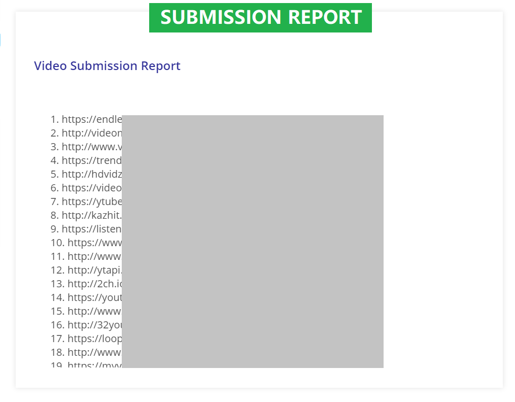 You will get a complete list of links where the video is submitted, right after the processing of a campaign.